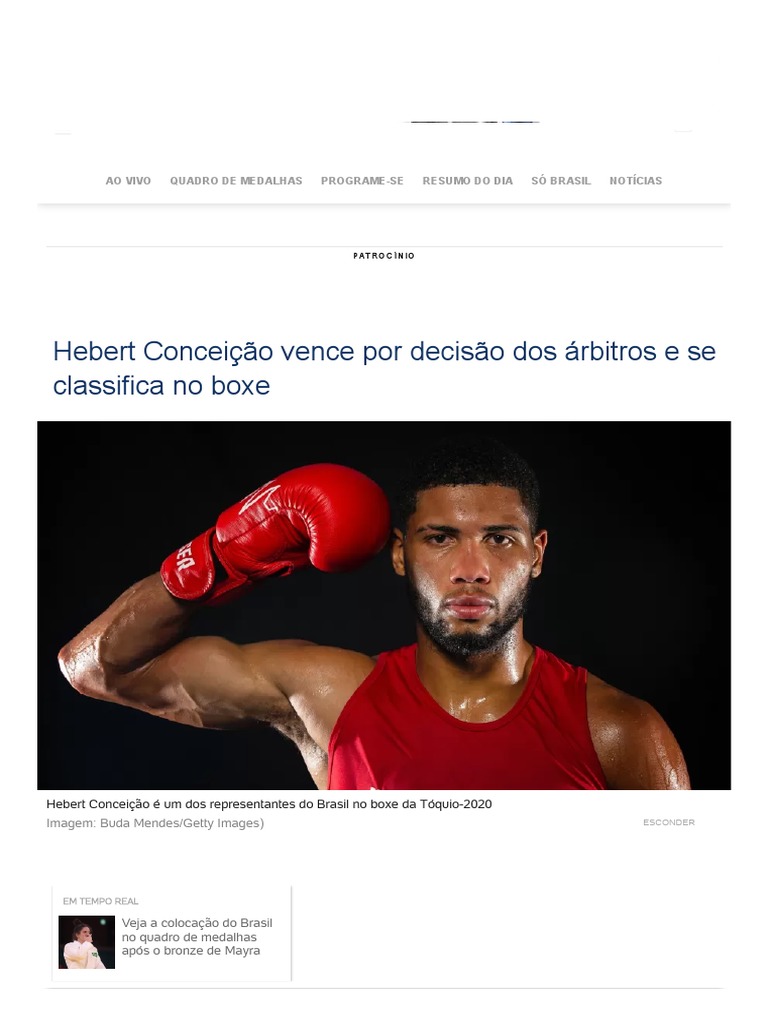 Hebert conceição conquista o bronze no mundial de boxe o boxe que vence desde a medalha de bronze conquistada nos jogos olímpicos do méxico, em 1968, o boxe do brasil amargava um ostracismo indigno na modalidade. Além de keno marley e bia ferreira, o brasil será representado nos jogos pelos pugilistas abner teixeira (91kg), graziele jesus (51kg), hebert souza (75kg), jucielen romeu (57kg), e wanderson de oliveira (63kg). Abner teixeira, na categoria de 91 kg, é o último participante brasileiro confirmado para os. Em tóquio, as disputas do boxe serão entre 24 de julho e 8 de agosto, na arena kokugikan, um palco tradicional do sumô na. Jun 25, 2021 · robson conceição, nos jogos rio/2016 conquistou a medalha de ouro.